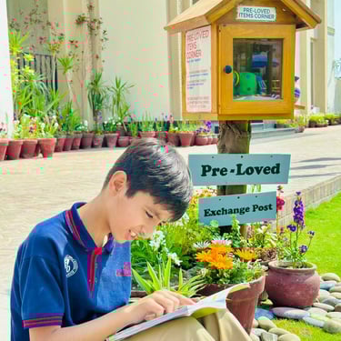 In today’s library lesson, our PYP-V learners stepped beyond the pages! Sitting surrounded by nature, they explored texts deeply, connecting stories with real-life objects and experiences. By linking reading with the world around them, they made every story memorable and meaningful. Learning truly comes alive when imagination meets reality!